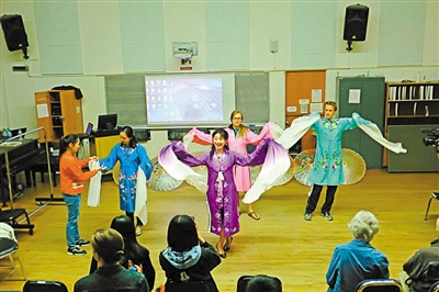 大学生们穿上戏服舞水袖